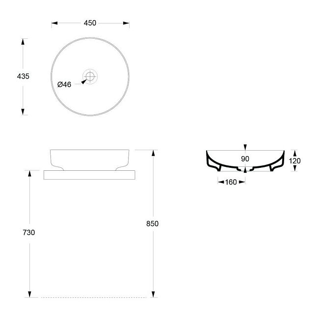 Alice FORM Раковина накладная, D450, без отверстия под смеситель, белый глянцевый