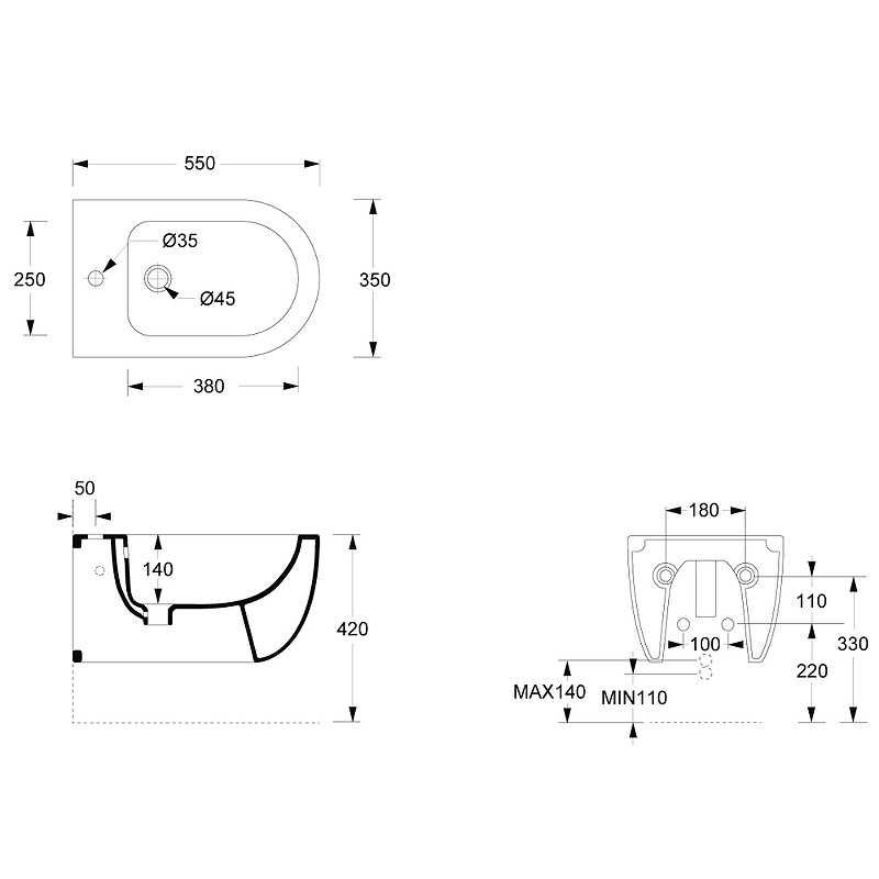 Alice Unica Биде подвесное 500*350, белый глянцевый