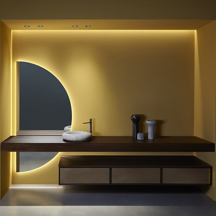Antonio Lupi Spicchio Зеркало 900х1800х25 мм., полукруглое, на раме, с блестящей кромкой, с белой светодиодной подсветкой коллекции Мебель для раковины Bespoke можно купить по розничной цене в нашем шоу-руме в Москве по адресу ул. Дениса Давыдова, д. 4 или через наш интернет-магазин StudioArdo.