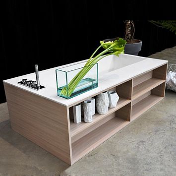 Antonio Lupi Biblio Ванна отдельностоящая 2000х1000х535 мм., левая, с открытыми нишами, с ножками и нажимным донным клапаном, Corian, цвет белый