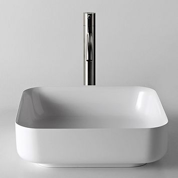 Antonio Lupi Bolo Раковина накладная 45х45см, без отв. под смес, без перелива, с д/клапаном (хром), мат-л: Flumood, цвет: белый