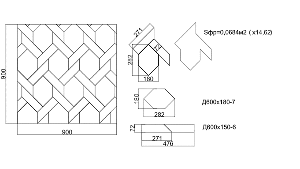 ART NATURA Модульный паркет Дуб "Многоугольный ритм" 72х900х900 цвет по согласованному образцу, Рустик (Rustic) Лак
