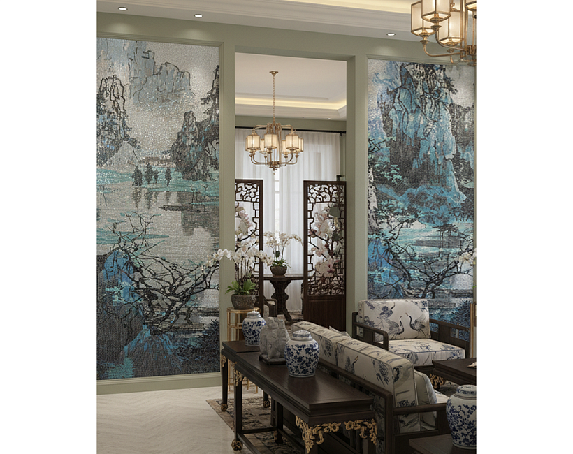«Каскад Гор и Озёр» — диптих панно ART NATURA из мозаики в восточном стиле.