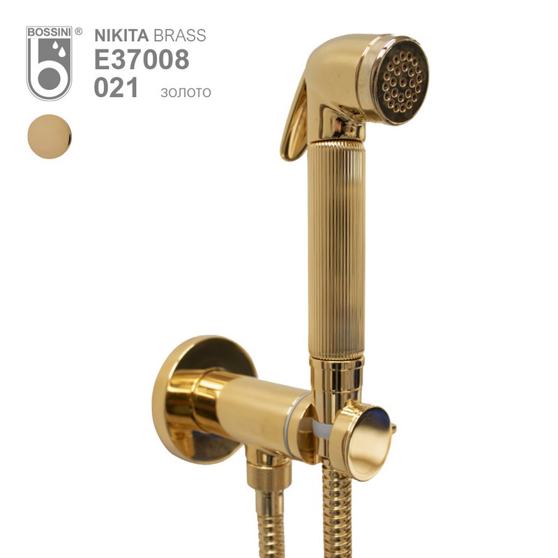 BOSSINI (NIKITA) Комплект гигиенический: прогрессивный смеситель, лейка с клапаном подачи воды, шланг 1250 мм, золото (021)