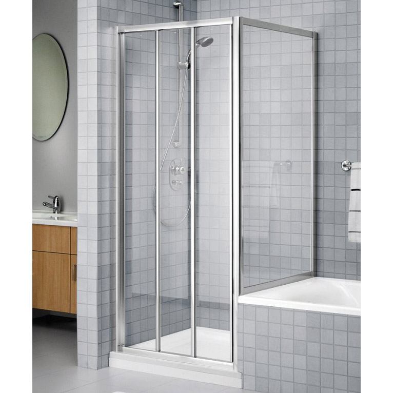 Душевая кабина для ниши Duka Prima 2000 glass с трехсекционной раздвижной дверью и укороченным боковым элементом Закалённое стекло 3 мм коллекции Душевые ограждения Duka Prima 2000 glass можно купить по розничной цене в нашем шоу-руме в Москве по адресу ул. Дениса Давыдова, д. 4 или через наш интернет-магазин StudioArdo.