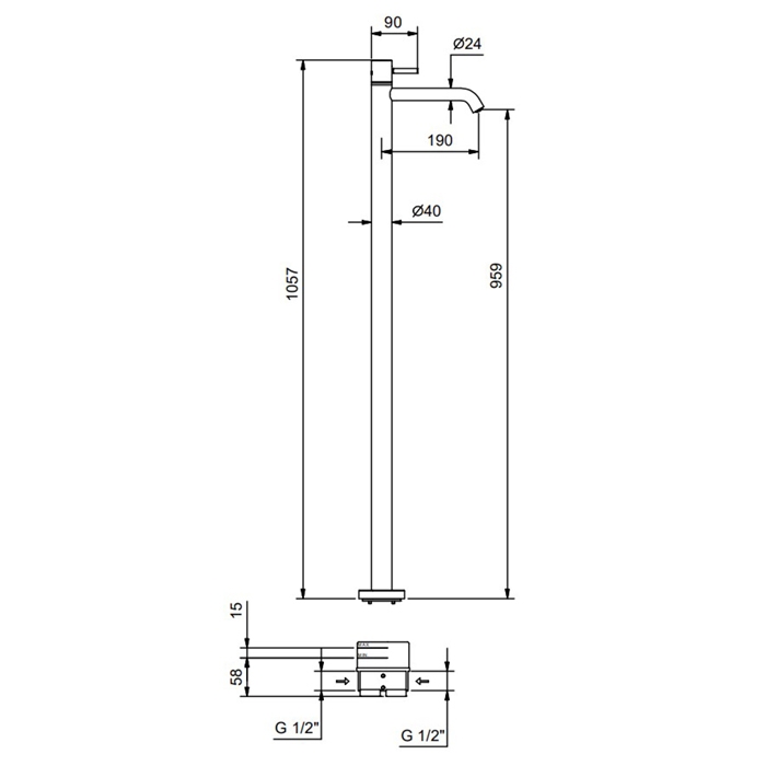 Fantini Nostromo Смеситель для раковины, напольный, без донного клапана, излив 190мм, (наружняя часть), цвет: хром коллекции Сантехника Fantini Nostromo можно купить по розничной цене в нашем шоу-руме в Москве по адресу ул. Дениса Давыдова, д. 4 или через наш интернет-магазин StudioArdo.