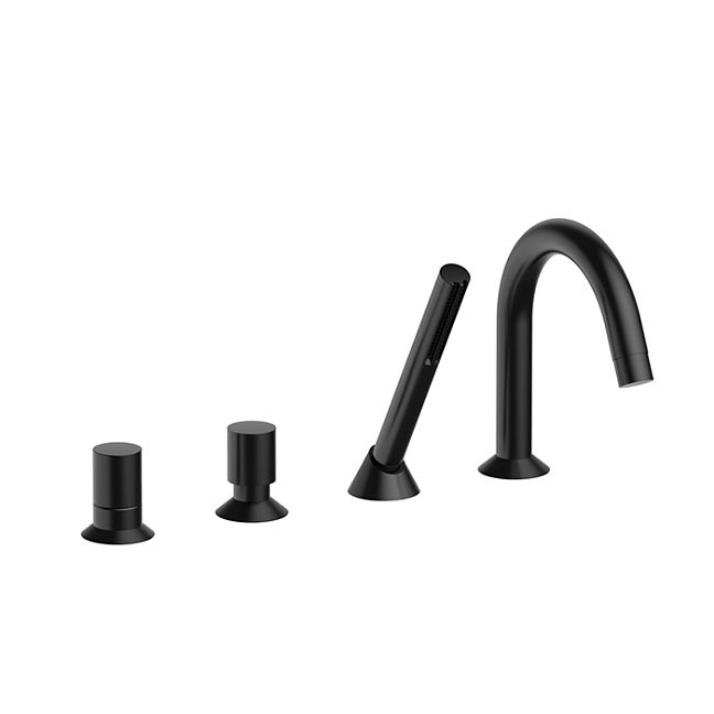 Fantini Nostromo Смеситель на борт ванны, 4 отв., с ручн душем, излив 195мм, цвет: черный матовый