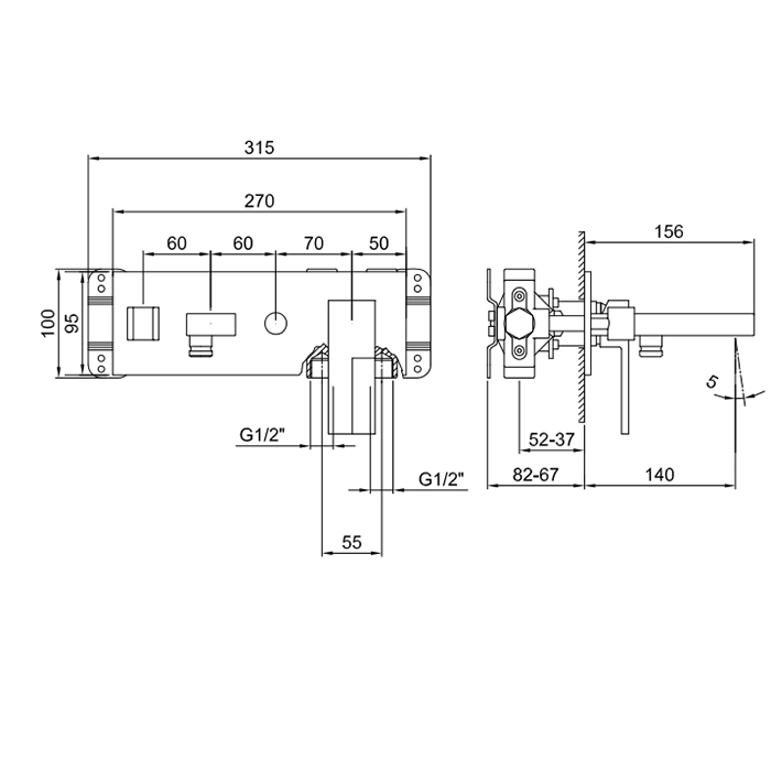 Fantini Внутренняя часть смесителя для ванны 19023320A, переключатель на 2 источника, 1/2