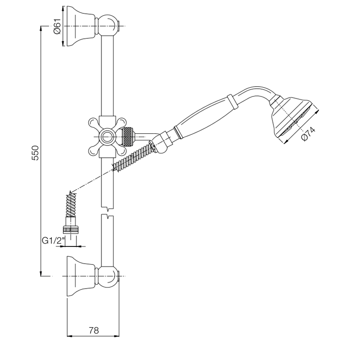 Fima Carlo Frattini Wellness Душевая штанга с ручным душем с белой керамической ручкой и металлическим шлангом 1500 мм., цвет хром