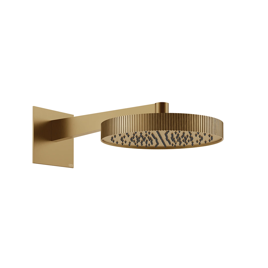 Gessi Incastri Верхний душ круглый d-300мм, с держателем L-375мм, цвет 726 Warm Bronze Brushed PVD коллекции Смесители Gessi Incastri можно купить по розничной цене в нашем шоу-руме в Москве по адресу ул. Дениса Давыдова, д. 4 или через наш интернет-магазин StudioArdo.
