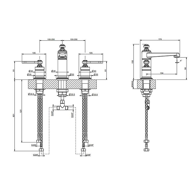 Gessi Venti20 Смеситель для раковины на 3 отверстия, высота излива 98 мм., хром