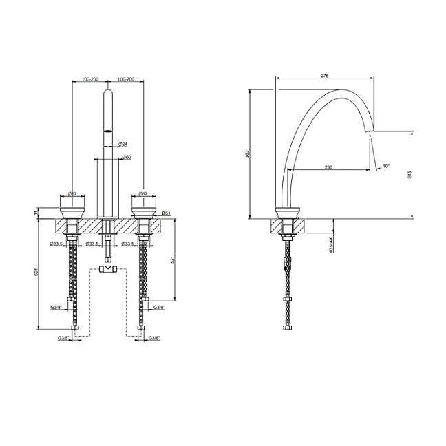 Gessi Origini Смеситель для раковины высокий на 3 отв, без донного клапана, Finox Brushed Nickel