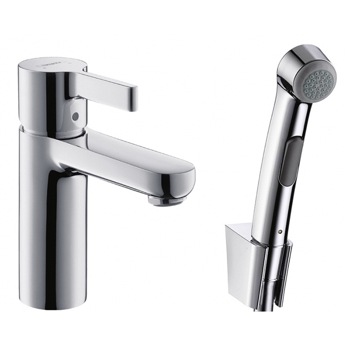 Смеситель для раковины Hansgrohe Metris S на 1 отв., с ручным душем и настенным держателем, цвет: хром коллекции Смесители Hansgrohe Metris S можно купить по розничной цене в нашем шоу-руме в Москве по адресу ул. Дениса Давыдова, д. 4 или через наш интернет-магазин StudioArdo.