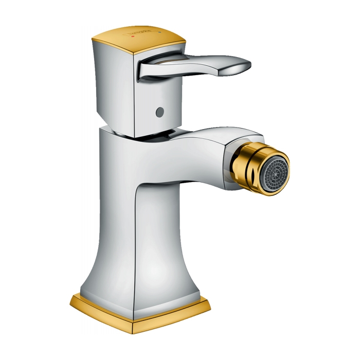 Смеситель для биде Hansgrohe Metropol Classic однорычажный, с рычаговой рукояткой, с донным клапаном, цвет: хром/золото