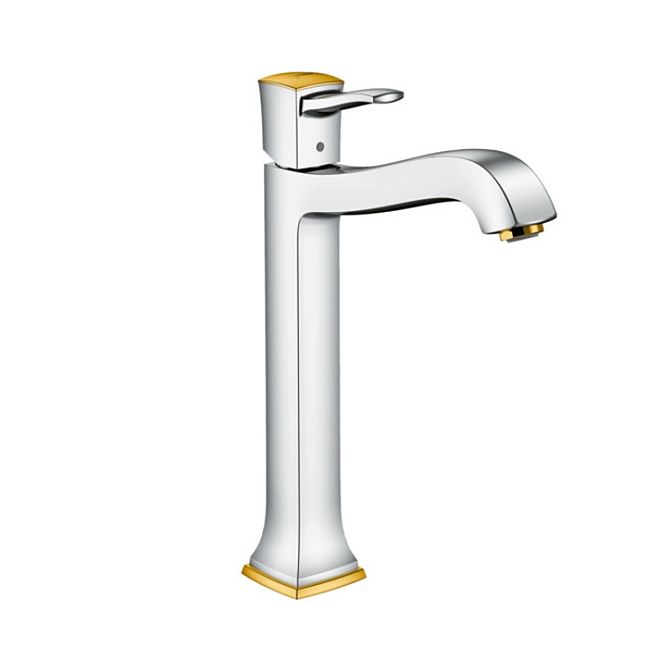 Смеситель для раковины Hansgrohe Metropol однорычажный, на 1 отв., h:31,9см, излив:19,1см., цвет: хром/золото коллекции Смесители Hansgrohe Metropol можно купить по розничной цене в нашем шоу-руме в Москве по адресу ул. Дениса Давыдова, д. 4 или через наш интернет-магазин StudioArdo.