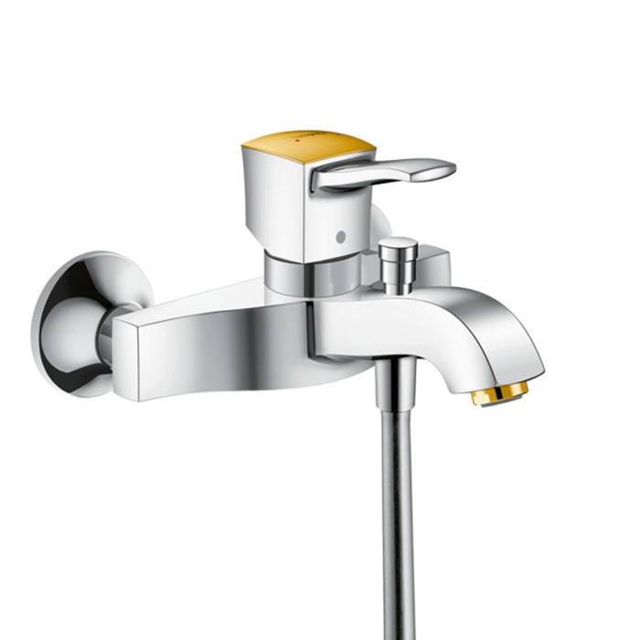 Смеситель для ванны Hansgrohe Metropolоднорычажный, настенный, цвет: хром/золото