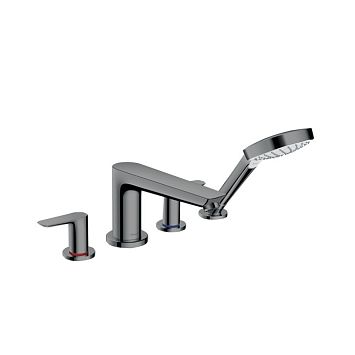 Смеситель на борт ванны Hansgrohe Talis E на 4 отв, с ручным душем, излив 196мм, цвет: шлифованный черный хром Смеситель на борт ванны Hansgrohe Talis E на 4 отв, с ручным душем, излив 196мм, цвет: шлифованный черный хром