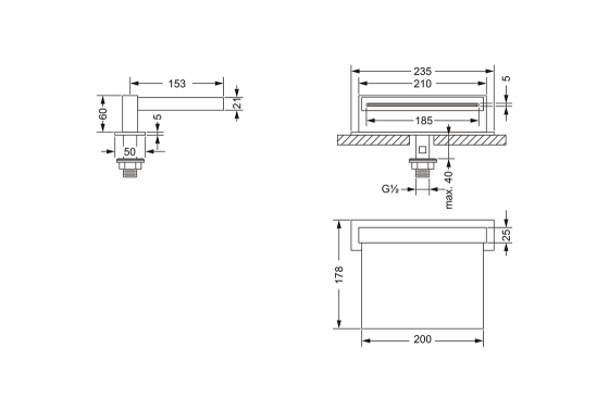 Каскадный излив, для монтажа на бортик ванны Joerger Acubo 621.50.101.xxx