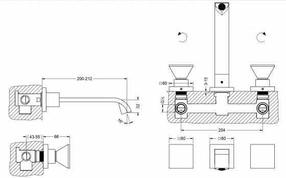 вентили с керамическими кран-буксами ½“ Необходимо: