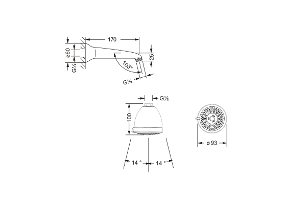 Верхний душ ½" Joerger Showers 649.13.650.xxx