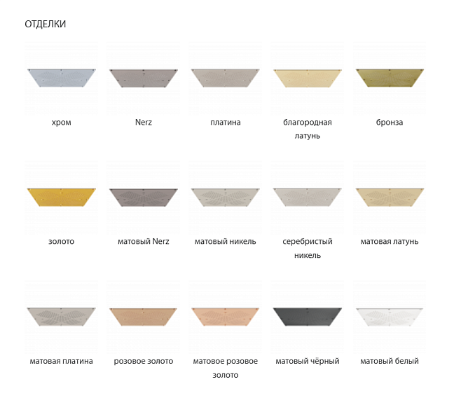Потолочное подсоединение или настенный держатель для душа заказывается отдельно.