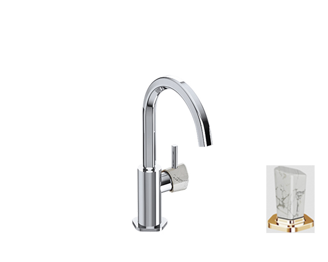 Jorger Shado Смеситель для раковины, ручка с камнем withe Turquiose, цвет sunshine (полированная латунь)