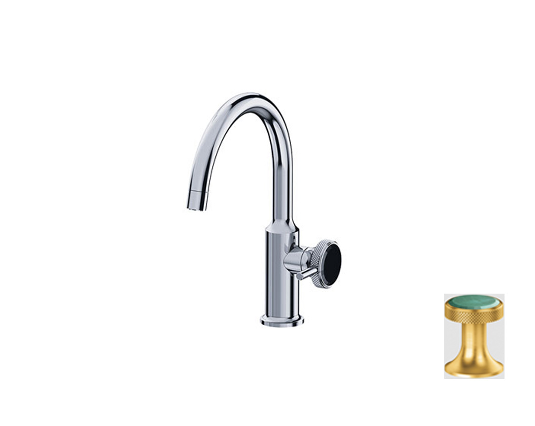 Jorger Valencia Смеситель для раковины, ручка с камнем green Avanturine, цвет gold matt (матовое золото)
