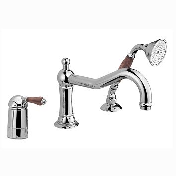 Nicolazzi Forest Смеситель для биде, на 1 отв, с донным клапаном, излив: 127 мм, ручки дерево, цвет: хром