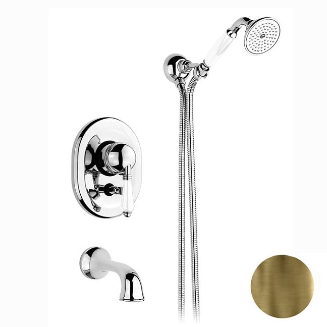 Nicolazzi P.M. Blanc Смеситель для ванны однорычажный, встраиваемый, с изливом 160мм и ручным душем, ручки белая керамика, цвет: бронза