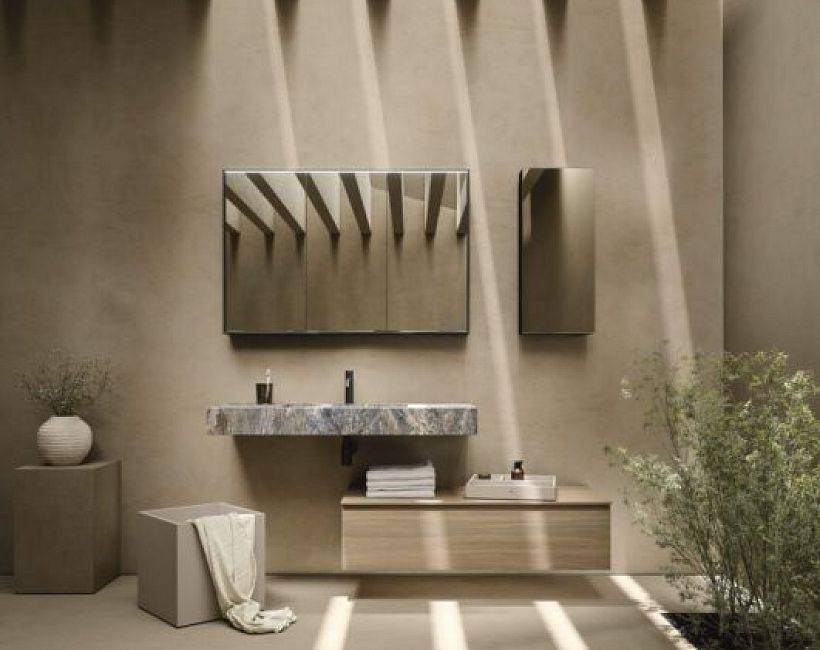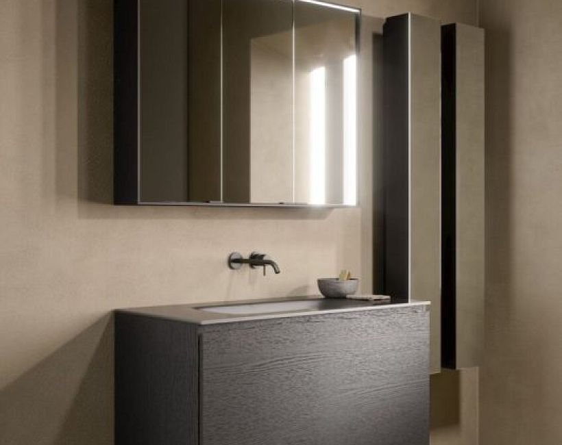 Oasis Axis Комплект: Тумба 105см, модуль 35см с полками, шпон Gold Walnut. Столешница L-140см с раковиной, стекло Castoro. Колонна 20x15xh150см, подвесная. Тумба 40x40xh48см передвижная коллекции Комплекты мебели Oasis Axis можно купить по розничной цене в нашем шоу-руме в Москве по адресу ул. Дениса Давыдова, д. 4 или через наш интернет-магазин StudioArdo.
