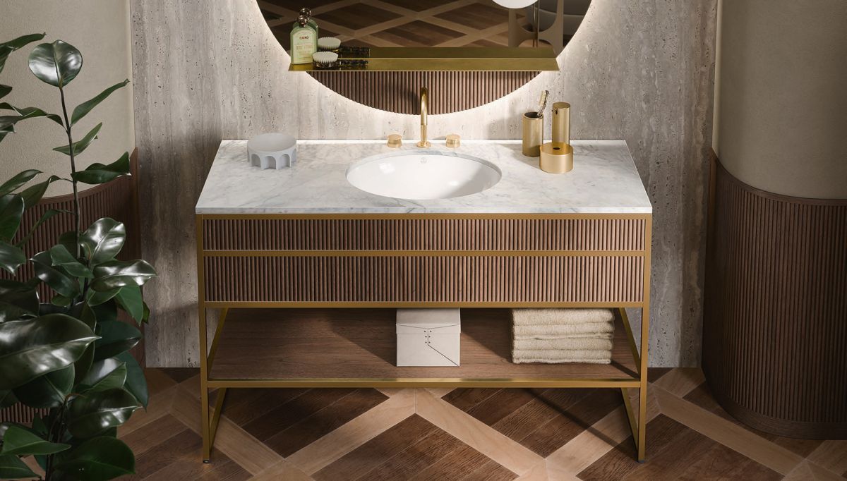 Столешница: мрамор Bianco Carrara с интегрированной раковиной Nautilus из белой керамики