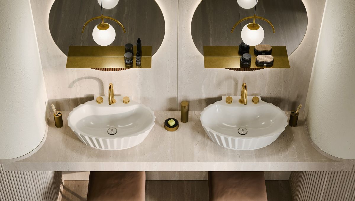 Oasis Academy Комплект: раковина Oasis Plissé с ванной Academy Avana и орех, золото L185 x W85 x H67 cm