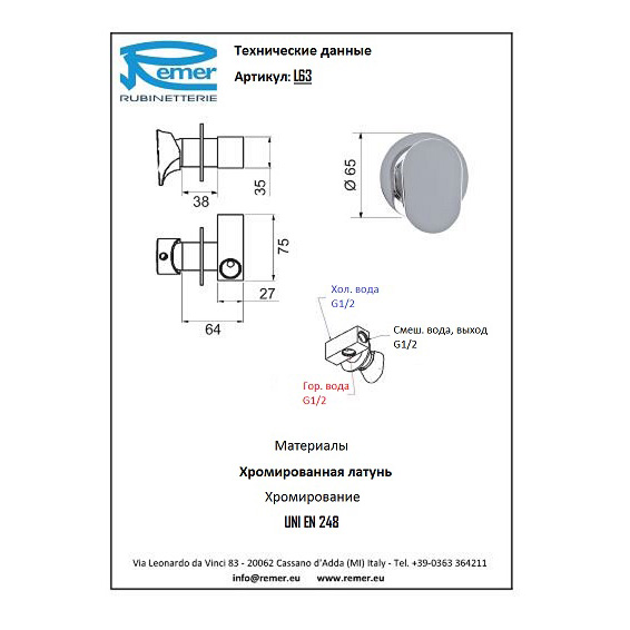 Remer Class Line Смеситель для душа встраиваемый L63 коллекции Смесители Remer Class Line можно купить по розничной цене в нашем шоу-руме в Москве по адресу ул. Дениса Давыдова, д. 4 или через наш интернет-магазин StudioArdo.