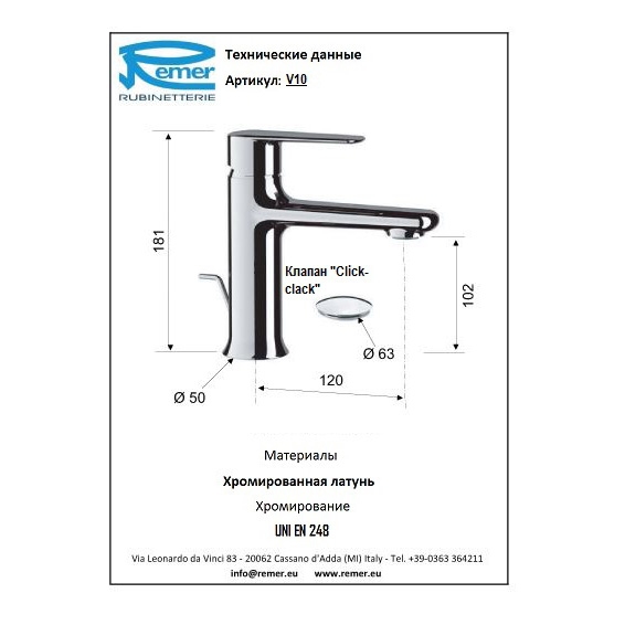 Remer Vanity Смеситель для раковины неповоротный, с донным клапаном V10 коллекции Смесители Remer Vanity можно купить по розничной цене в нашем шоу-руме в Москве по адресу ул. Дениса Давыдова, д. 4 или через наш интернет-магазин StudioArdo.