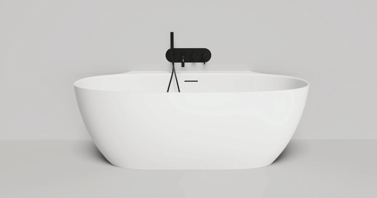 Эта модель соединяет в себе классическую овальную форму изголовий и спрятанный за ними пристенный борт. Благодаря такой конструкции создаётся впечатление отдельностоящей ванны, но сохраняется практичность плотного примыкания к стене и дополнительной поверхности для хранения косметических средств и аксессуаров. При желании здесь также можно разместить и смеситель. Более тонкая, детальная проработка формы чаши позволила уйти от классического понимания пристенной ванны с массивной боковой проекцией: блок, соприкасающийся со стеной, будто утоплен вдоль задней поверхности. Такова новая эстетика облегчённого дизайнерского решения Salini.