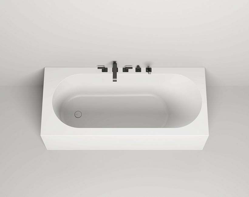 Овальная чаша и строгая геометрия экранов превращают модель Fabia в скульптуру, скромно занимающую место у стены ванной комнаты. Она притягивает взгляды. Внутри визуально цельного объёма скрывается купель с пологой спинкой, обещающей приватность и комфорт.