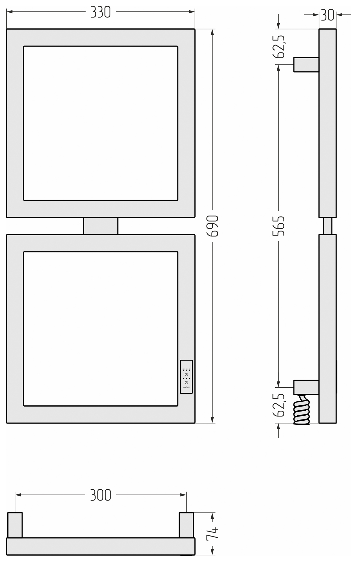Сунержа Этюд Полотенцесушитель электрический 69x30 Матовый белый Сунержа Этюд Полотенцесушитель электрический 69x30 Матовый белый