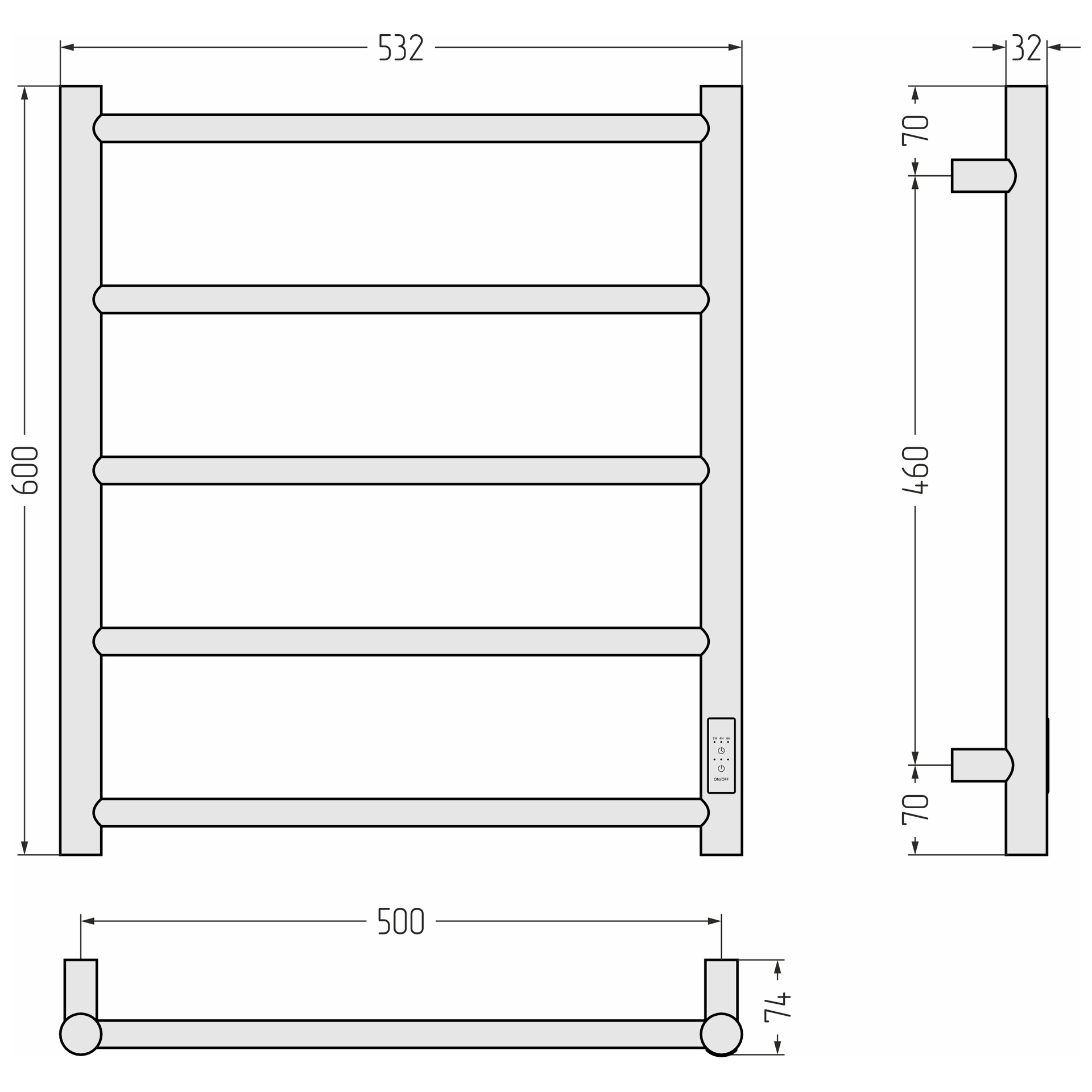 Полотенцесушитель электрический Стилье Формат 26 600х500 правый, Матовый белый Полотенцесушитель электрический Стилье Формат 26 600х500 правый, Матовый белый