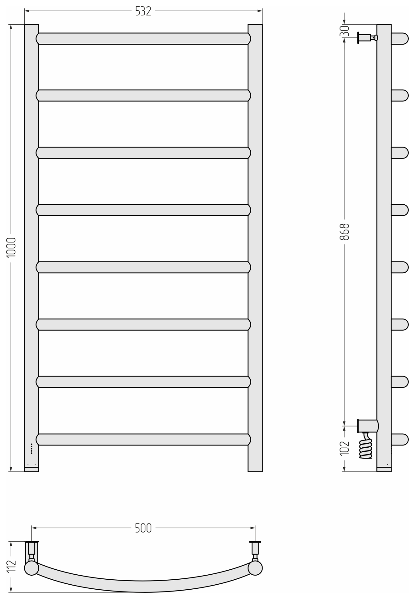 Полотенцесушитель электрический Сунержа Галант 4.0 500х500 МЭМ левый, Без покрытия Полотенцесушитель электрический Сунержа Галант 4.0 500х500 МЭМ левый, Без покрытия