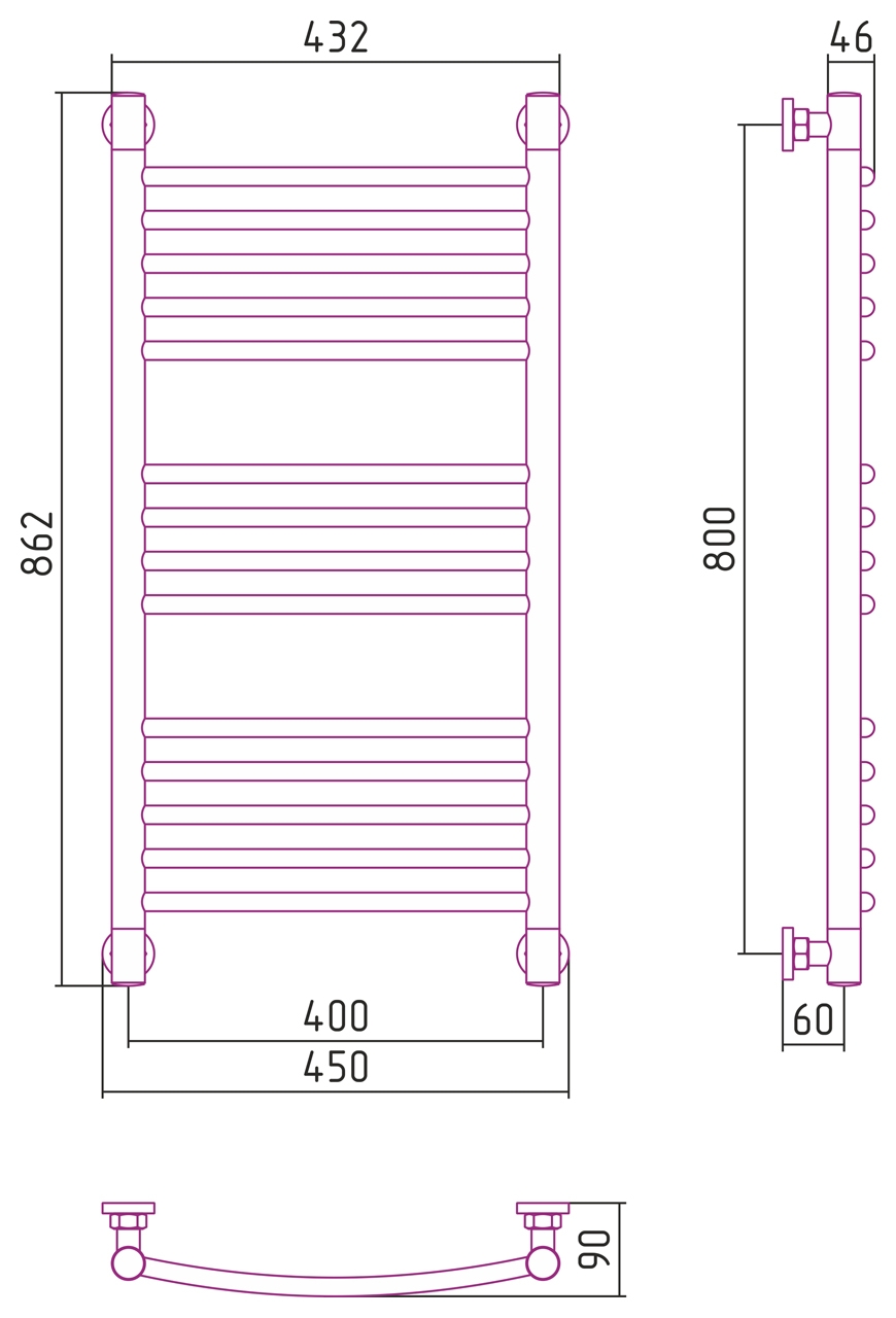 Полотенцесушитель водяной Сунержа Богема+ выгнутая 800х400, Матовый чёрный коллекции Водяные полотенцесушители Сунержа Богема+ выгнутая можно купить по розничной цене в нашем шоу-руме в Москве по адресу ул. Дениса Давыдова, д. 4 или через наш интернет-магазин StudioArdo.