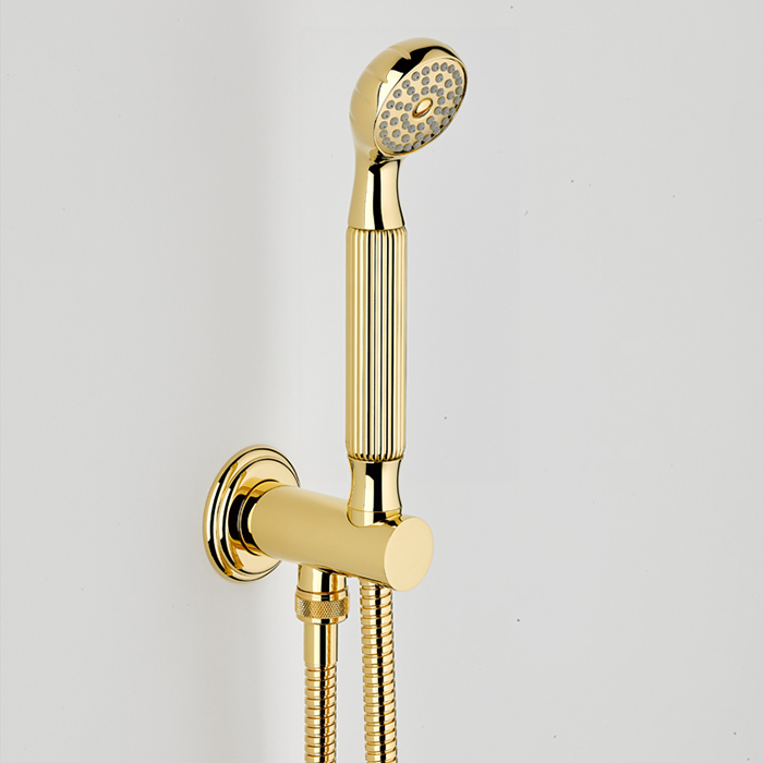 THG Amboise Malachite Душевой комплект с ручным душем, держатель с подводом воды и шланг, цвет: полированное золото коллекции Amboise Malachite можно купить по розничной цене в нашем шоу-руме в Москве по адресу ул. Дениса Давыдова, д. 4 или через наш интернет-магазин StudioArdo.
