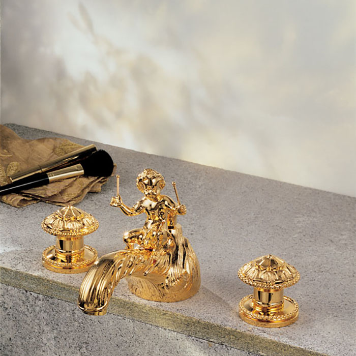 THG Amour De Trianon Смеситель для раковины на 3 отверстия, с донным клапаном, цвет: полированное золото коллекции Смесители THG Amour De Trianon можно купить по розничной цене в нашем шоу-руме в Москве по адресу ул. Дениса Давыдова, д. 4 или через наш интернет-магазин StudioArdo.