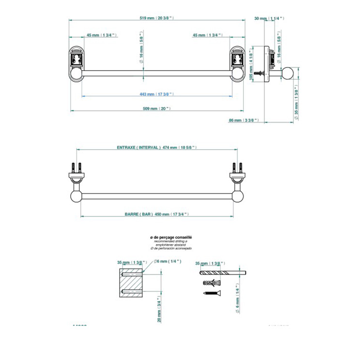 THG Ange Полотенцедержатель 45см., подвесной, цвет: хром