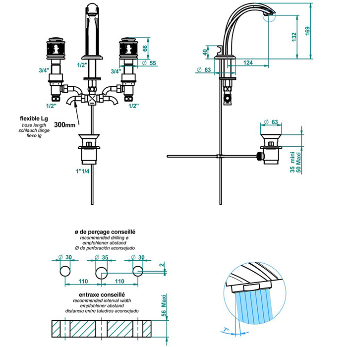 THG Ange Смеситель для раковины, 3 отв., цвет: хром коллекции Ange можно купить по розничной цене в нашем шоу-руме в Москве по адресу ул. Дениса Давыдова, д. 4 или через наш интернет-магазин StudioArdo.