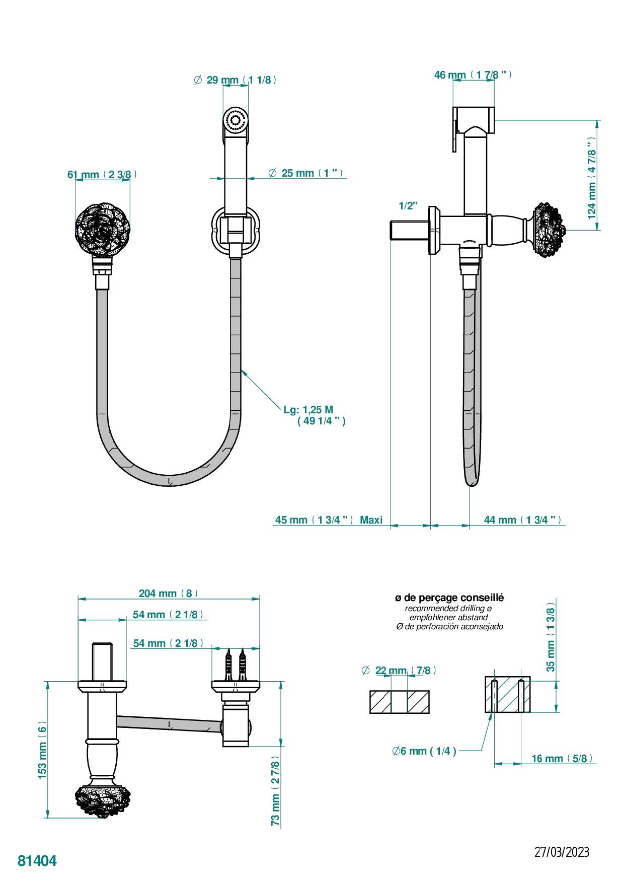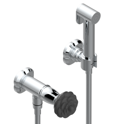 Душ гигиенический THG Camelia Black Crystal: вентиль, 1.25 м шланг, крючок, вывод для душа и лейка с клапаном