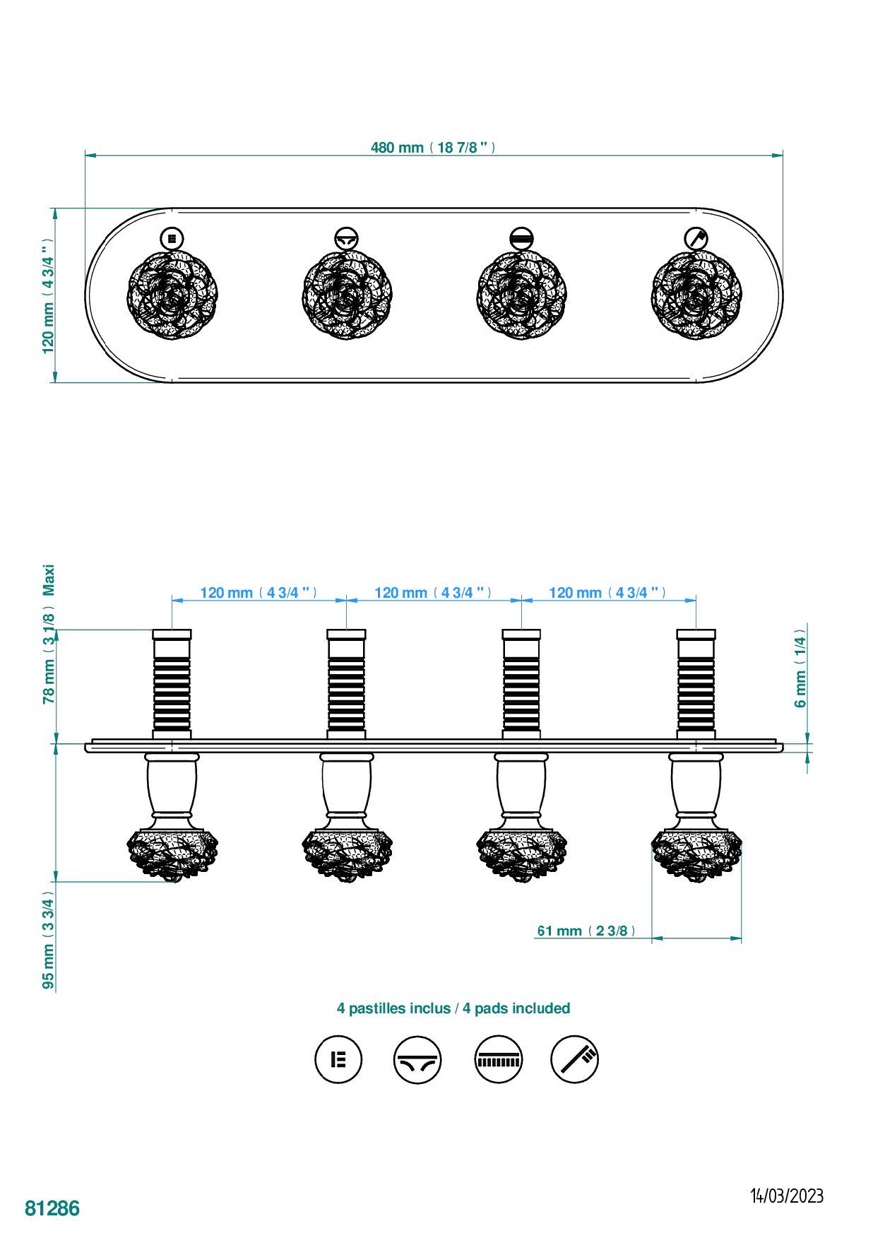 Термостат THG Camelia Black Crystal Комплект отделки для 4 настенных вентилей на монтажной пластине