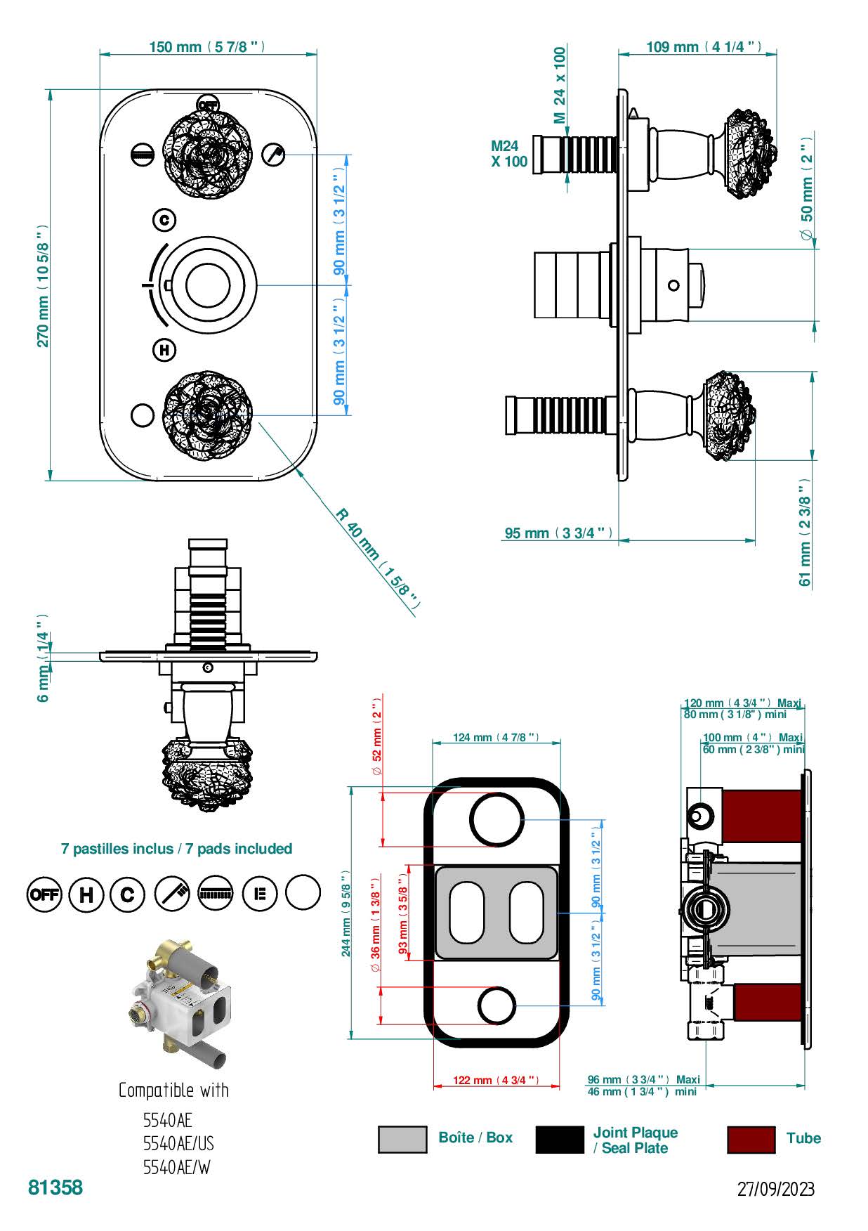 Термостат THG Camelia Black Crystal Внешняя часть с ручками регулировки для арт. G00-A00-5540AE