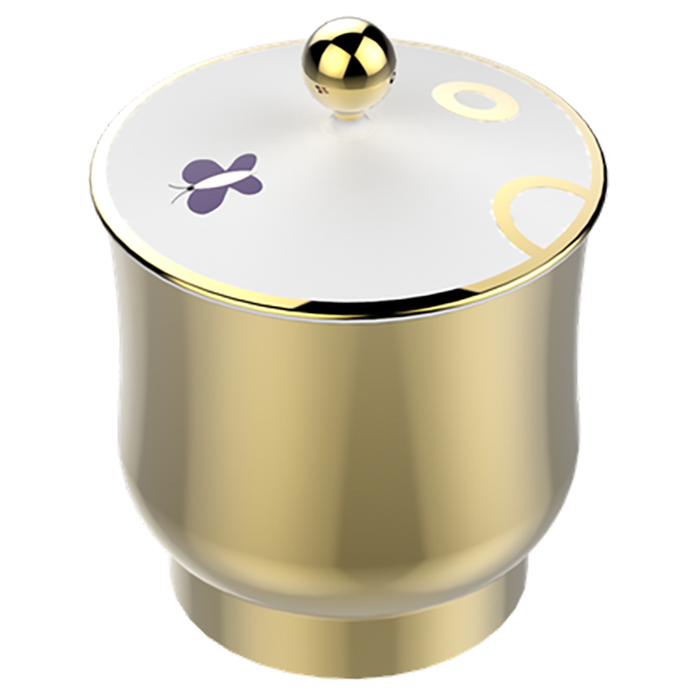 THG CAPUCINE MAUVE DECOR OR Китайская лакированная коробка с белой керамической крышкой Ø94 мм., small size, декор золото/лиловый, цвет: золото