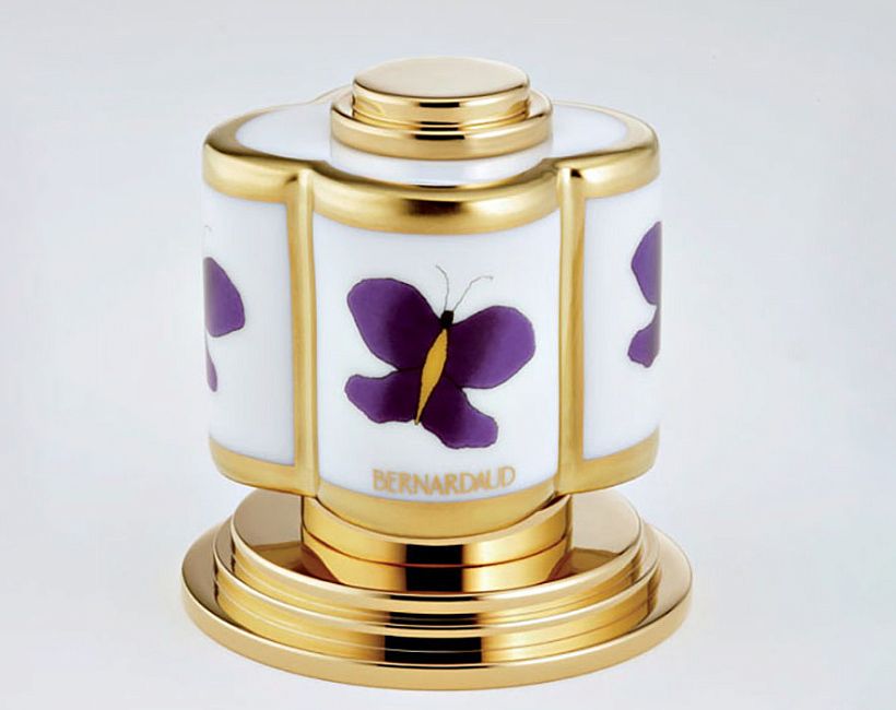 THG CAPUCINE MAUVE DECOR OR Смеситель для раковины на 3 отверстия, с донным клапаном, декор золото/лиловый, цвет: полированное золото коллекции Capucine mauve можно купить по розничной цене в нашем шоу-руме в Москве по адресу ул. Дениса Давыдова, д. 4 или через наш интернет-магазин StudioArdo.