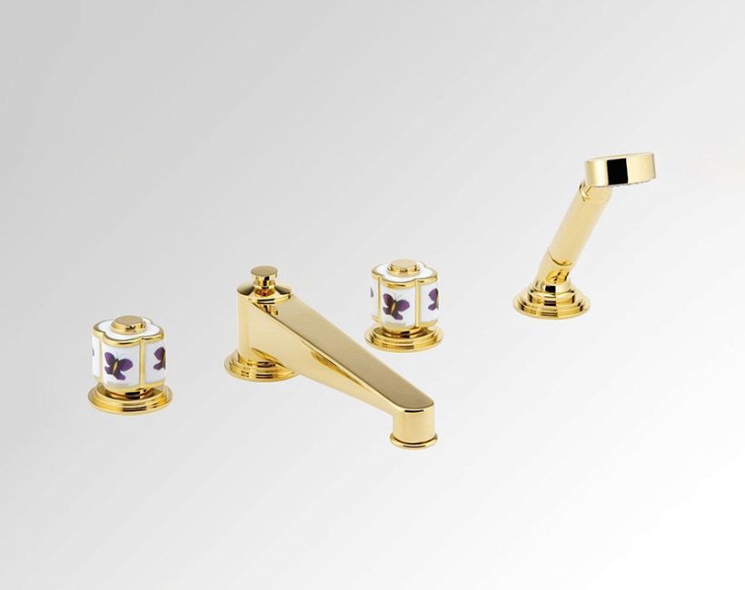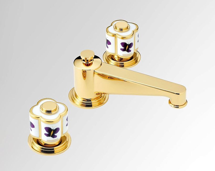THG CAPUCINE MAUVE DECOR OR Смеситель для раковины на 3 отверстия, с донным клапаном, декор золото/лиловый, цвет: полированное золото